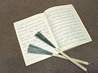 ジャズ喫茶通いですね。今日は銀座のニュー美松、明日は新宿ACB、新宿ラセーヌ。今日は銀座でウエスタンやってるところとか、ハワイアンとか。今日はシャンソン聴こう、越路吹雪がやってるよ、銀巴里で。っていう感じでどこでも行きましたね。ジャズ喫茶は殆ど行ったと思います。 -お金もかかったでしょう。 給料が1万1千円で、寮費を引かれて8千円。それを全部そういうことに使ってましたね。それと煙草。レコードを買いまくっていたのも自衛隊のとき。山野楽器さんが売りに来てくれて買ってましたね。 -プロの時代はジャズをやられていたんですか。 そうです。ダンスホールとか、あと、桜田淳子さんのバックとかそっち系をやっていました。 -ツアーなんかにも同行したんですか。 その頃は、ツアーとは言わなかったんです。びーた(「たび」の逆)「えー?また、びーたなの」ってな感じです。偶然、春日八郎さんのバックもやっていたんですよ。春日八郎のバックをやるなんて夢にも思わなかったですよ。 -このスネア・ドラムは当時叩いていた物ですか。 これは思い出の楽器。30ウン年前で、世界で一番高いスネアです。これは年季が入ったスティック・ケースです。スネアはラディック製、スーパー・センセティブルモデルで響線(スネア)が1本1本調整できるんですよ。これは自衛隊の時使っていたんです。 |